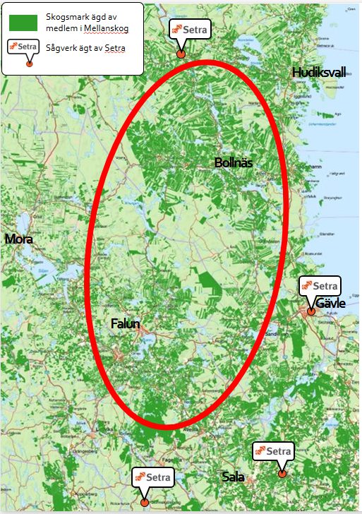 Runt om området där de värsta skadorna återfinns så finns också flera av Setras sågverk. Dessa ligger logistiskt väldigt väl för att vi framgångsrikt ska kunna använda dem till den upparbetning av virke som nu behöver ske.