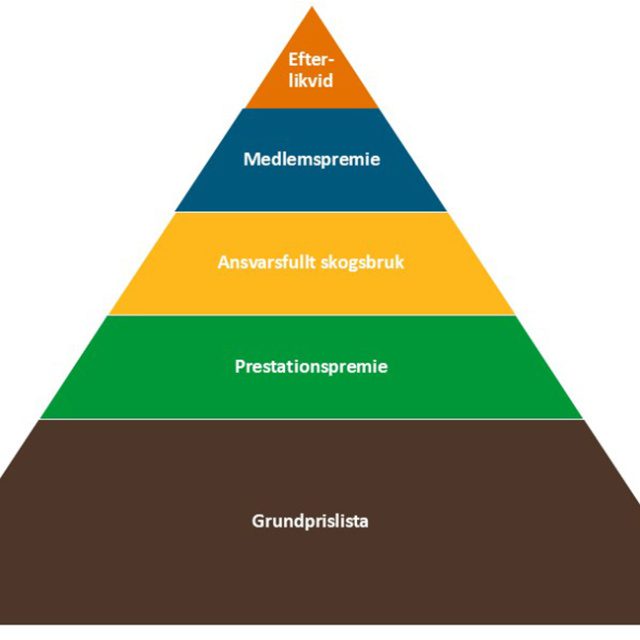 Mellanskog förhandlar fram villkor som ligger till grund för de marknadsprislistor per geografi som vi tillämpar. Timmerprislistan visar att högre virkeskvalitet betalas bättre än lägre och att grövre diametrar ger mer betalt än klenare dimensioner.